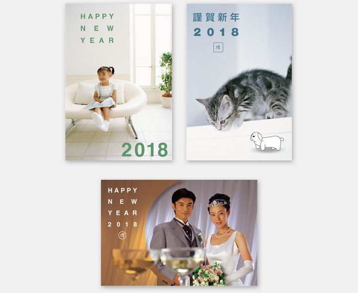 家族の「集合写真」の年賀状や、結婚年賀状、出産年賀状、子供の年賀状、ペットの年賀状、旅先写真を使用した年賀状(一人旅、家族旅行) 等、ファミリー年賀状を制作させて頂いております。写真は原則的には、お客様にて、データにて、ご提供頂いております。(USB・メール 等 でご提供頂いております)※ データをお持ちでない場合、紙焼き原稿を頂ければ、スキャニング対応も可能です。
